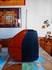 Televisore vintage di colore arancione prodotto dalla Philips negli anni '70/'80.