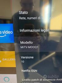 Vendo TV Xiaomi 43 pollici modello MiTV-MOOQ1, perfettamente funzionante e in ottime condizioni. ✔️ Risoluzione 4K Ultra HD ✔️ Smart TV con Android TV (accesso a Netflix, YouTube, Prime Video, ecc.) ✔️ Wi-Fi e Bluetooth integrati ✔️ Audio e immagini di ottima qualità ✔️ Inclusi telecomando originale e piedini La TV è stata utilizzata poco, nessun difetto, schermo senza graffi o aloni. 📦 Disponibile per prova 📍 Consegna a mano in zona 💰 Prezzo: 150€ (trattabili) Per qualsiasi informazione non esistate a contattarmi.