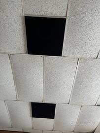 Tweeter a tromba montati su pannello con retina nera protettiva, provenienti da installazione a soffitto di locale notturno. Perfettamente funzionanti. Vengono venduti senza pannello. Disponibili 15 pezzi.