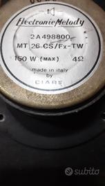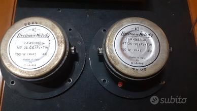 Coppia tweeter Electronic Melody by CIARE, mod. MT 26 CS /Fx - TW, 4 Ohm 150 watt, perfettamente funzionanti e in ottimo stato come da foto, disassemblati per cambio progetto, ottimi per autocostruzioni, solo interessati.