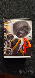 vendo per sostituzione kit, coppia di tweeter dragster modello dtn 24 da 25mm di diametro, i tweeter sono stati acquistati da me nuovi assieme al suo kit originale, poi successivamente smontati e rimessi nello scatolo originale, completi del loro imballo originale, a parte vendo anche i loro crossover passivi originali, qualsiasi tipo di prova sono a disposizione, posso dimostrare anche tramite foto una prova con tester per l'impedenza dei tweeter...no perditempo curioso affaristi