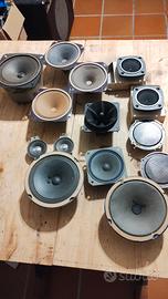 14 tweeter/ midrange di svariate marche, piezoelettrici, elettrostatici, elettrodinamici. Tutto usato, ma funzionante perfettamente, una cupolina leggermente ammaccata sul midrange zeta elettronica. 50 Euro in blocco. Pezzi singoli a richiesta. + spedizione.