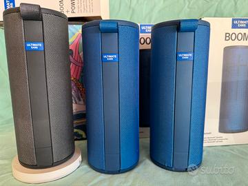 Vendo 3 Speeker Marchio Ultimate Ears Potenza massima in uscita dell'altoparlante 70 Watt Risposta in frequenza 20 KHz Tecnologia di connettività Bluetooth Modalità uscita audio Sound Spaziale La cassa portatile Ultimate Ears BOOM 3 offre un suono potente e avvolgente a 360° con bassi profondi e precisi, accuratamente bilanciato per sentire ogni singola nota Magic Button: Puoi controllare la musica in streaming, programmare e navigare negli elenchi di riproduzione di Apple Music/Deezer Premium+ Con 1 base Ricarica Wireless: Carica Ultimate Ears BOOM 3 in modalità wireless con il dock di ricarica Power Up Ultimate Ears BOOM 3 Speaker Completamente Impermeabile, Galleggiante: con grado di protezione IP67 contro acqua e polvere, può essere immerso fino a 30 minuti Batteria lunga durata fino a 15 ore Vendo in blocco