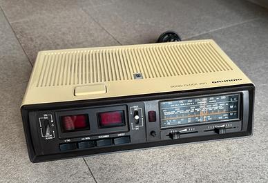 Radio Grundig SONOCLOCK 350a Made by Grundig in Portugal – Radio da collezionismo Vintage Anni 1978/1979 – Bachelite (plastica) Color Champagne - Display LED funzionante - Alimentazione 220 V presa UE e a batteria 9v 6lf22 – Connessione antenna - Frequenze* non sintonizzate - Per dettagli tecnici puoi vedere dettagli tecnici su Radiomuseum – dimensioni largh. 30 cm, Prof. 19 cm, h 9,5 cm – Revisione funzionamento* per appassionati