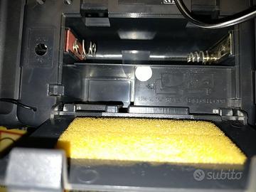 il collegamento per funzionamento a corrente 6V è rientrato dentro lo stereo e andrebbe sistemato, funziona a pile, mangiacassette da revisionare, cavo corrente non compreso