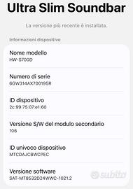 Vedo Ultra Slim Soundbar + sub. Samsung, modello HW-S700D, numero di serie 6GW314AX700195R. No scatola originale.