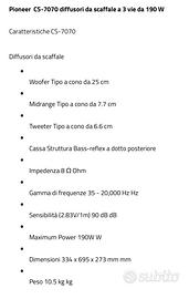 Pioneer CS-7070 diffusore a 3 vie da 190 W