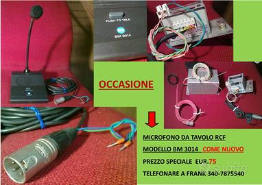 Zona Busto Arsizio (VA), vendo unita' controllo rack RCF - Mackie modello SA2095 perfettamente funzionante, COME NUOVA. E' una unita' di controllo per centrali a rack di diffusione sonora che, nella catena audio, deve essere collegata tra le diverse sorgenti audio e le varie unita' amplificatrici di potenza. Tra le caratteristiche contempliamo: - selezione diretta della sorgente (sei ingressi bilanciati e sbilanciati) che deve pilotare l'unita' di potenza selezionata, tra sei amplificatori diversi. - Controllo di sei sorgenti audio tramite il piccolo altoparlante/monitor interno ed il vu-meter a led. - Accensione e spegnimento centralizzato di tutte le apparecchiature installate nel rack di studio. - Innumerevoli applicazioni nel campo BF - Hi /FI e stage sound. Disponibile anche microfono come nuovo RCF mod.BM3014 perfettamente funzionante completo di translatore telefonico per collegamenti centralini interni e linee telefoniche esterne adatto anche a collegamento sistemi di amplificazione pubblica diffusione, a euro 80. Per altre informazioni contattare per telefono Francesco al 340-7875540NON SI RISPONDE A: messaggi di Subito e WhatsApp. CONTATTI ESCLUSIVAMENTE PER TELEFONO. Se vedete l'annuncio significa che l'oggetto e' ancora disponibile pertanto a messaggi del tipo "e' ancora disponibile" non seguirà risposta alcuna. Preferibile consegna a mano, in caso di spedizione il pagamento comprensivo delle relative spese dovrà esserre trasmesso a mezzo bonifico bancario. Non sono accettate altre forme di pagamento.