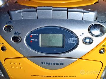 United Stereo CD Radio Cassette. Radio e CD funzionanti, cassette no.