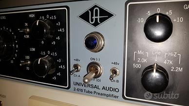 Preamplificatore microfonico/linea valvolare vintage Universal Audio 2-610 in perfette condizioni funzionali ed estetiche, utilizzato pochissimo revisonato e rivalvolato a nuovo.