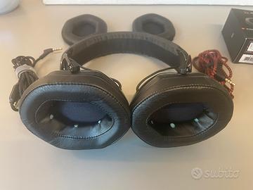 Cuffie Over-Ear V-Moda Crossfade M-100 utilizzate dai migliori DJ del mondo. Adatte ad audiofili, gamer, musicisti e DJ. Cuscinetti maggiorati in memory foam per un confort prolungato nell’ascolto. Struttura in acciaio, custodia rigida, dopoio cavo e adattatore lightning per iPhone. I cuscinetti sono come nuovi, qualche segno di usura sulla struttura e sull’archetto in alcantara.