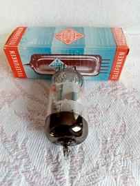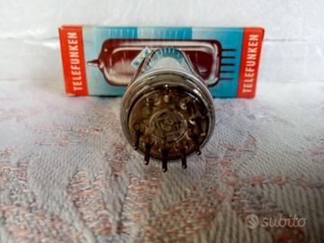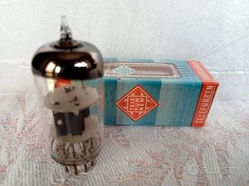 Perfettamente bilanciato , tubo a vuoto TELEFUNKEN NOS/NIB ECC81, 12AT7, base noval, originale made in Germany stabilimento di ULM, provvista di tradizionale logo identificativo ⩤⩥, in scatola originale, produzione Dicembre 1956. Privo di loghi esterni causa inserimento e disinserimento su zoccolo .