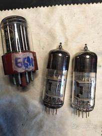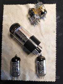 Valvole per elettroniche Hi Fi: 5691 RCA. 6H30×2 Electro Harmonix E88CC ×2 Mullard. GZ34/5AR4 USA GE 396A ×2 Western Electric. 6AL5 Telefunken. 6X4. RCA. 6C5. RCA. Vari prezzi