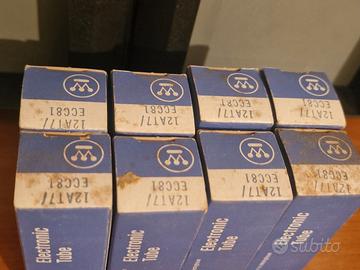 Cedo dalla mia collezione valvole nos nib ECC81 mai aperte. Dovrebbero essere del 1973, ne ho 8 pezzi prese in blocco c'è un piccolo sconto. Posso inviarle testate a 40 euro la coppia.