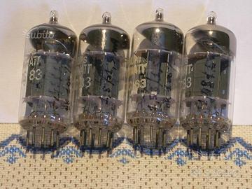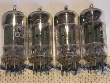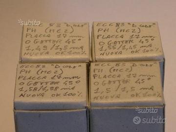 Quartetto selezionato di Ecc 83 mC2 NOS della Philips - D code. Le valvole sono state testate, e sono tutte con correnti che vanno da 1,45 a 1,58 mA (vedi foto). Tutti i triodi hanno una transconduttanza di 2 mA/V, quindi sono tutte efficienti al 100%.