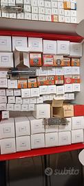 197 Valvole termoioniche per apparati radio, amplificatori e TV, alcune in confezione originale e altre in confezione neutra in quanto precedentemente posizionate senza scatola in valigetta TV service