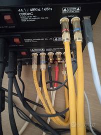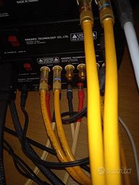 2 coppie di cavi di segnale pluripremiati terminati RCA/RCA con connettori placcati oro alta qualità. Rame OFC Argentato, Connettori placcati Rame/Argento/OroSono molto corti 30 cm circa per minimizzare perdite e per occupare meno spazio possibile. Guarda gli altri miei annunci per il sistema audio completo.