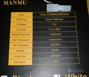 Ventole 12 cm. 12v bianche con illuminazione LED colorati silenziose con ammortizzatori e viti di aggancio attacco standard molex passante nuove con imballo