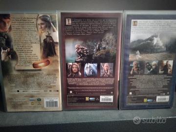 vendo come in foto 3 videocassette di il signore deglianelli composto da la compagnia dell'anello, le due torri e il ritorno del re, con custodia e testo in italiano. lotto completo di 3 film. per collezionismo del genere.