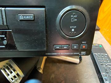 vhs sony funzionante con telecomando, unico difetto l, a parte qualche segno sopra, la plastica della presa scart e rotta, ma si puo usare comunque, e con 11 videocassette