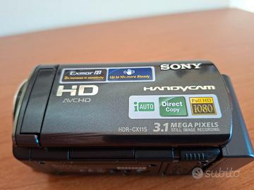 Video camera digitale Sony handycam modello HDR CX 115E, con libretto istruzioni, cd, cavi vari e comoda borsa a tracolla.