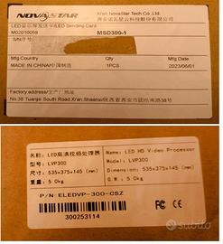 Vendo come da titolo processore video LVP300 con installata scheda sending MSD300. Imballaggi originali con cavetteria compresa. Usato solo per test, come nuovo.