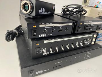 Vendo in blocco 4 componenti e 5 videocamere nuove mai usate, si tratta di un fondo di magazzino, sono presenti anche due supporti per telecamere, imballi di cartone per telecamere, alcuni spinotti di collegamento, alcuni manuali di istruzione.