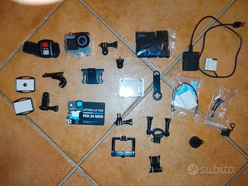 videocamera/fotocamera dual screen nuova adatta a tutti gli sport, con supporti multipli mai utilizzati, waterproof e con REMOTE CONTROL incluso