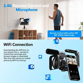 Videocamera Digitale UHD 5K per Video Blogging, Vlogging, Streaming Live, Videochiamate, Insegnamento online, Creazione contenuti social. Ottica da 2,4 mm con sensore CMOS da 56 Megapixel. Touch Screen IPS da 3 pollici. Microfono a condensatore con 20db di guadagno. Visione notturna. Menu in lingua italiana. 2 batterie al Litio da 1700 mAh. Telecomando per il controllo da remoto. Applicazione per Android e iOS