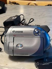 Videocamera Canon DVD CAMCORDER con ZOOM OTTICO 30x e ZOOM DIGITALE 800x. Supporto di registrazione MINI DVD. Set completo di: - Adattatore originale AC/DC Canon CA-570 - N.2 Batterie Li-ion Canon e caricabatterie universale LI-ION PIXO C1 con aggiunta di adattatore auto PIXO e4 020564 - CAVI AUDIO/VIDEO ORIGINALI (mai usati) - borsetta a tracolla professionale multitasche