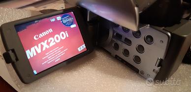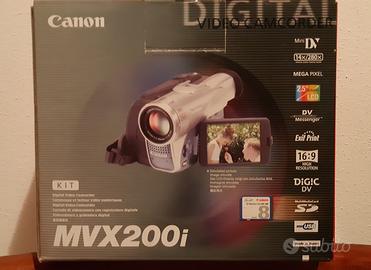 Camcorder Canon miniDV zoom ottico 14X (digitale 280x) 16:9 slot SD card per fotografie, display colori 2,5" stereo , funzione di acquisizione video da sorgente esterna, riprese Video e Fotografie su SD card, telecomando multifunzione, 2 batterie e caricabatterie completa di cavo s-video,cavo audio-video stereo, usb, connettore scart-rca, sd card (Canon ), cassetta miniDV, 1 cassetta Pulisci Testine istruzioni , cd Software, imballo originale , tenuta molto bene