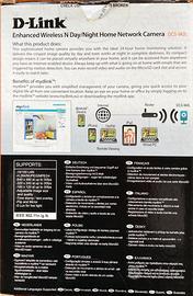 Videocamera di rete wireless N Day & Night con MicroSD card D-Link modello DCS-942L colore bianco, videocamera di rete con MicroSD dotata di LED a infrarossi incorporati che consentono la trasmissione e la registrazione continua di immagini video e audio di alta qualità fino a 7gg, anche in condizioni di totale oscurità, gestione tramite computer sia via iPhone o Android, requisiti di sistema e dimensioni indicati sulla scatola come da fotografia, scheda tecnica disponibile su richiesta, usato, ottimo stato