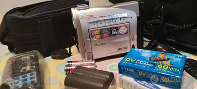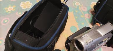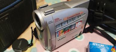 videocamera compatta portabilissima qualità Canon con cassetta di registrazione nuova confezionata e cassetta per pulizia nastro, doppia batteria monitor 2,5" stabilizzata, zoom ottico 10x digitale20x con borsa per il trasporto della videocamera e separatamente ma unibile il trasporto dell'alimentatore e cavi. libretto di istruzioni e telecomando