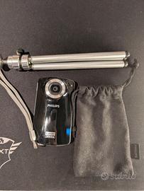Videocamera Philips full HD 1080p tascabile perfettamente funzionante. La fotocamera fa' foto in HD o video 30 fps in full HD, perfetta da tenere in tasca e per video all' esterno. Si ricarica tramite porta USB che fuoriesce dalla parte bassa, vendo insieme all' astuccio ufficiale e un mini tre piedi a vite ufficiale, specifico per quel modello.