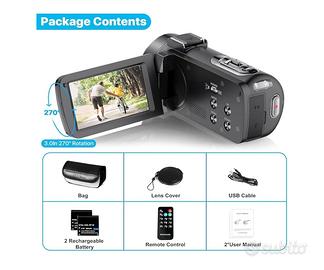 VIDEOCAMERA FULL HD 1080P E 36MP: Questa videocamera videocamera supporta la ripresa di video FHD 1080P e una risoluzione dell'immagine di 36 MP, schermo IPS da 3,0 pollici e supporta la rotazione di 270° con zoom digitale 16X. Questa videocamera è piccola e leggera, può aiutarti a catturare e registrare momenti fantastici con immagini o video di alta qualità. Questa videocamera per vlogging è un regalo perfetto per bambini, adolescenti, dilettanti e principianti