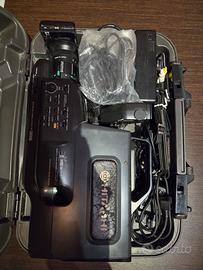 Videocamera VHS come da titolo, venduta come NON funzionante ma probabilmente è guasto solo l'alimentatore. L'apparecchio è completo di borsa rigida e di tutti gli accessori e cavetteria a corredo. Batteria da riparare/sostituire.