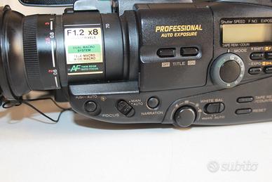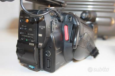 Altre funzioni: Chiave digitale - Intervallometro - Autoscatto - Dissolvenza o nero - Suono stereo Hi-Fi - Doppiaggio audio, mixaggio - Inserimento video - Timestamp - 7 modalità di programma di esposizione - Microfono per commento - Invertitore - Indicizzazione - Correzione e blocco esposizione – Commutazione S-VHS/VHS – Opzione: telecomando.
