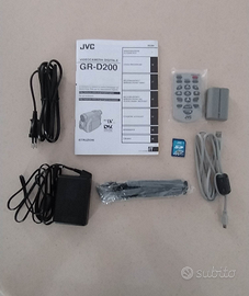 Videocamera a cassette Mini DV, con corpo in metallo. Usata pochissimo. Completa di batteria, caricabatterie\alimentatore originale, SD card, tracolla, cavo USB, telecomando e libretto di istruzioni.