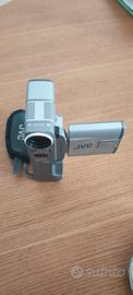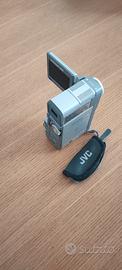 Videocamera JVC modello GR-DVM5 super accessoriata con due batterie ricaricabili e una batteria con cavo, caricabatterie con funzione di visualizzazione a TV, telecomando infrarosso per comandare la videocamera a distanza in fase di visualizzazione in TV, cavo micro USB, 2 cassette vergini SONY, supporto per cavalletto e manuale italiano.