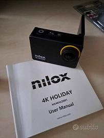 Videocamera nilox 4k holiday . Ultra hd- completa di accessori e adesivi x fissarla al casco