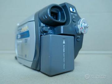 Videocamera Panasonic VDR-D160 Mini DVD e SD card Zoom Ottico 30X Schermo LCD da 2,5 Pollici Microfono integrato Colore argento Batteria, Caricabatterie Cavo per collegamento caricabatteria alla corrente Qttime condizioni (cinturino impugnatura a mano abbastanza rovinato ma funzionale)