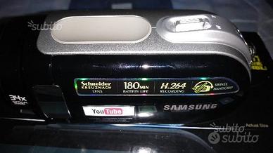 Samsung VP-MX20 videocamera digitale compatta, obiettivo Schneider, che assicura una consistente riduzione del rumore, zoom ottico del valore di 34x, registrazione su schede di memoria SD o MMC, sensore da 800.000 pixel, schermo LCD da 2,7 pollici, stabilizzatore di immagine, effetti digitali e Face Detection.