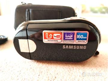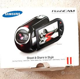 Videocamera digitale Samsung Flashcam, batteria 160 minuti, perfettamente funzionante, già munita di scheda SD. Accessori: custodia videocamera, cavo usb e collegamento Tv, compresi. Prezzo non trattabile.