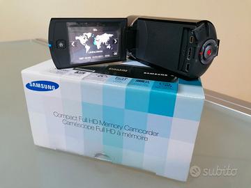 Videocamera Samsung FULL HD 1920X1080 in confezione originale, completa di accessori e cavi di alimentazione +2 batterie originali. Fa sia ottimi video, che ottime foto, è perfettamente funzionante, in condizioni eccellenti e dotata ancora della pellicola protettiva sul display.