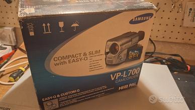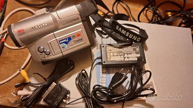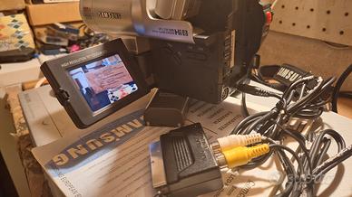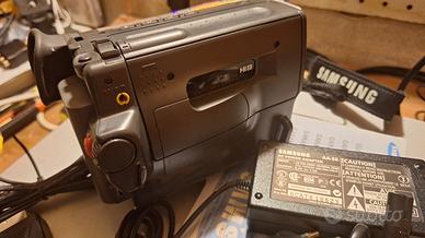 Videocamera Samsung a cassette HI8-8MM, perfettamente funzionante e con tutti gli accessori di serie. Un oggetto valido per rivedere i filmati registrati con questo formato e per riprodurre, e quindi riversare in digitale i propri ricordi.