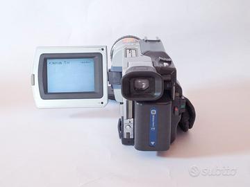 Videocamera Digital8 della Sony, modello DCR-TRV430E. Todata di TBC (Time Base Controller) e di DNR (Digital Noise Reduction), quindi è l’ideale per riversare anche le vecchie cassette analogiche Video8 e HI8. E’ funzionante sia in modalità di lettura e ripresa, ma c’è un problema nella videocamera (riparabile) che non permette di utilizzare il cavo come alimentatore e come caricabatterie. Nel lotto è comunque incluso un caricabatterie esterno che permette di caricare la batteria. Presenta un paio di difetti estetici come da foto, che non influiscono assolutamente sul funzionamento.