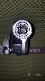 Videocamera Sony con lenti Carl Zeiss 20x DVD + RW/ - RW/ - R compatibile, colore grigia, dotata di pannello touch Hybrid LCD a colori. Utilizza solo mini DVD, sia per video che per foto.