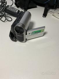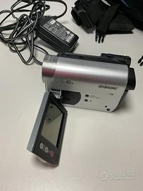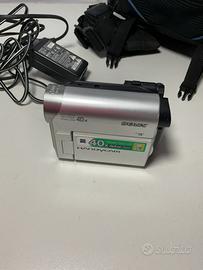 Videocamera digitale Sony Handycam DCR-HC51E. - Zoom ottico 40x. - Touch Panel LCD. Questo dispositivo è una videocamera digitale Sony Handycam DCR-HC51E. Utilizza il formato di registrazione MiniDV su nastro. È dotata di un obiettivo Carl Zeiss Vario-Tessar con zoom ottico 40x. Dispone di uno schermo LCD da 2,5 pollici. Completa di borsa