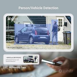 INE685 [Controlla le doppie lenti tramite app] Dotato della tecnologia a doppia lente di EZVIZ, HB90 Dual utilizza tre motori per garantire che entrambe le fotocamere possano ruotare senza intoppi per ridurre i punti ciechi il più possibile, basta fare pochi tocchi sull'app EZVIZ per controllare i doppi obiettivi. [Una fotocamera, due direzioni] Dotato di due obiettivi in risoluzione 2K +, HB90 Dual può catturare viste grandangolari e scatti dettagliati con un solo dispositivo. Ora non è più necessario fare una scelta difficile tra il monitoraggio dell'ingresso o del cortile: le due lenti possono rivolgersi a prospettive diverse allo stesso tempo. [Tecnologia AOV] A differenza della maggior parte delle fotocamere a batteria sul mercato, che hanno problemi a rilevare e registrare video a causa della breve durata della batteria e dei sensori non intelligenti, la fotocamera è dotata della rivoluzionaria tecnologia AOV di EZVIZ per consentire la registrazione tutto il giorno garantendo un lungo tempo di standby con una distanza di rilevamento molto maggiore. [Pannello solare da 8 W incluso] HB90 Dual è seriamente intenzionato a ottenere senza problemi. Installare il pannello solare incluso in un luogo soleggiato e collegarlo alla fotocamera, in modo che il sistema richiederà energia verde gratuita per mantenere l'orologio 24 ore su 24, tutto da solo. [Rilevamento di veicoli umani] Oltre a catturare le attività umane con una ricchezza di informazioni, HB90 Dual riconosce la forma di un'auto da altri oggetti in movimento. Se il tuo familiare si ferma davanti al tuo vialetto o qualcuno parcheggia nella tua area rilevata, riceverai una notifica immediata.