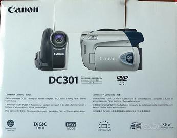VENDO: PRATICAMENTE NUOVA, IN CONDIZIONI ECCELLENTI, PRIVO DI USURA, COME SI PUO' EVINCERE DALLE FOTO, PER INUTILIZZO, VIDEOCAMERA MINI DIGITALE CANON DC301, E PAL SILVER BLACK DVD CAM DIGITAL ZOOM 36X SLOT SD CARD PER FOTO ANTISHOCK. PREZZO DI LISTINO E' DI EURO: 205,89 DEL 2008, AQUISTATA DA UNIEURO A TORINO, USATA POCHISSIMO.